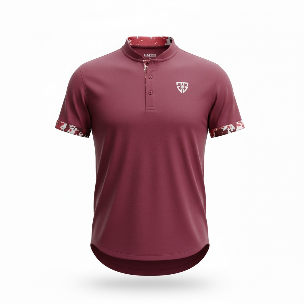 Embroidered logo on the front chest, woven tag on front curved hem, flip up sleeves to reveal print. Gator Golf Apparel embroidered on upper back.